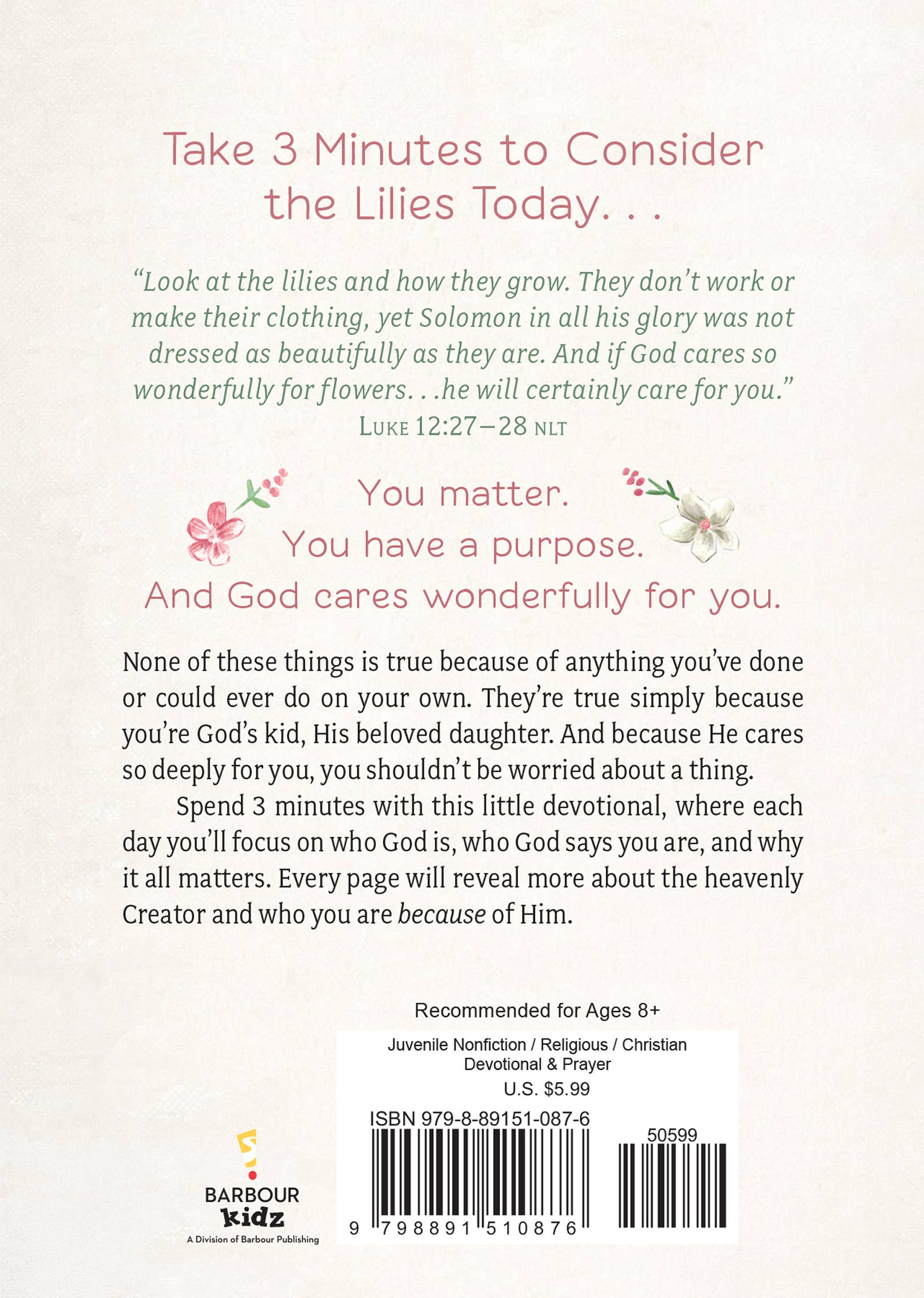 Consider the Lilies: 3-Minute Devotions for Girls is a wonderful gift for girls ages 8 and up!